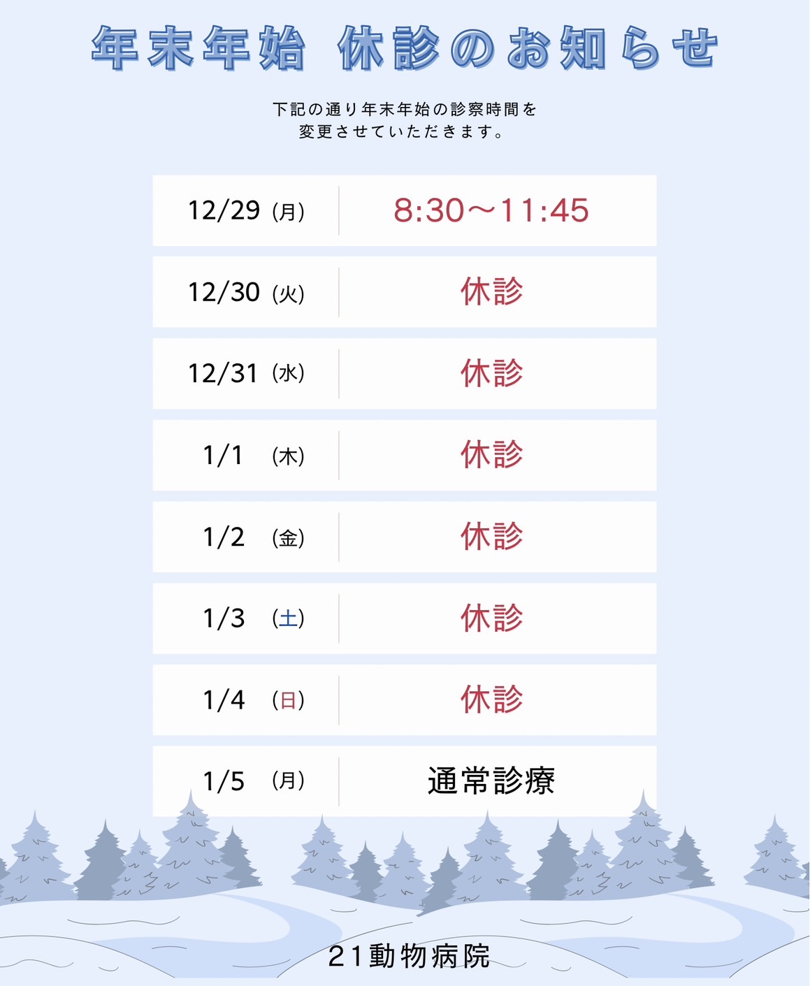 年末年始のお知らせ