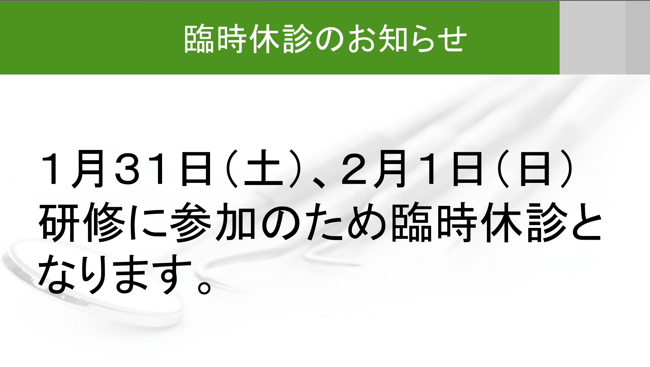 1月、2月の臨時休診のお知らせ